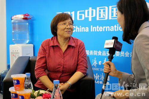 湖南果秀食品(集團)有限公司董事長陽國秀接受中國經濟網記者采訪。中國經濟網 韓肖攝