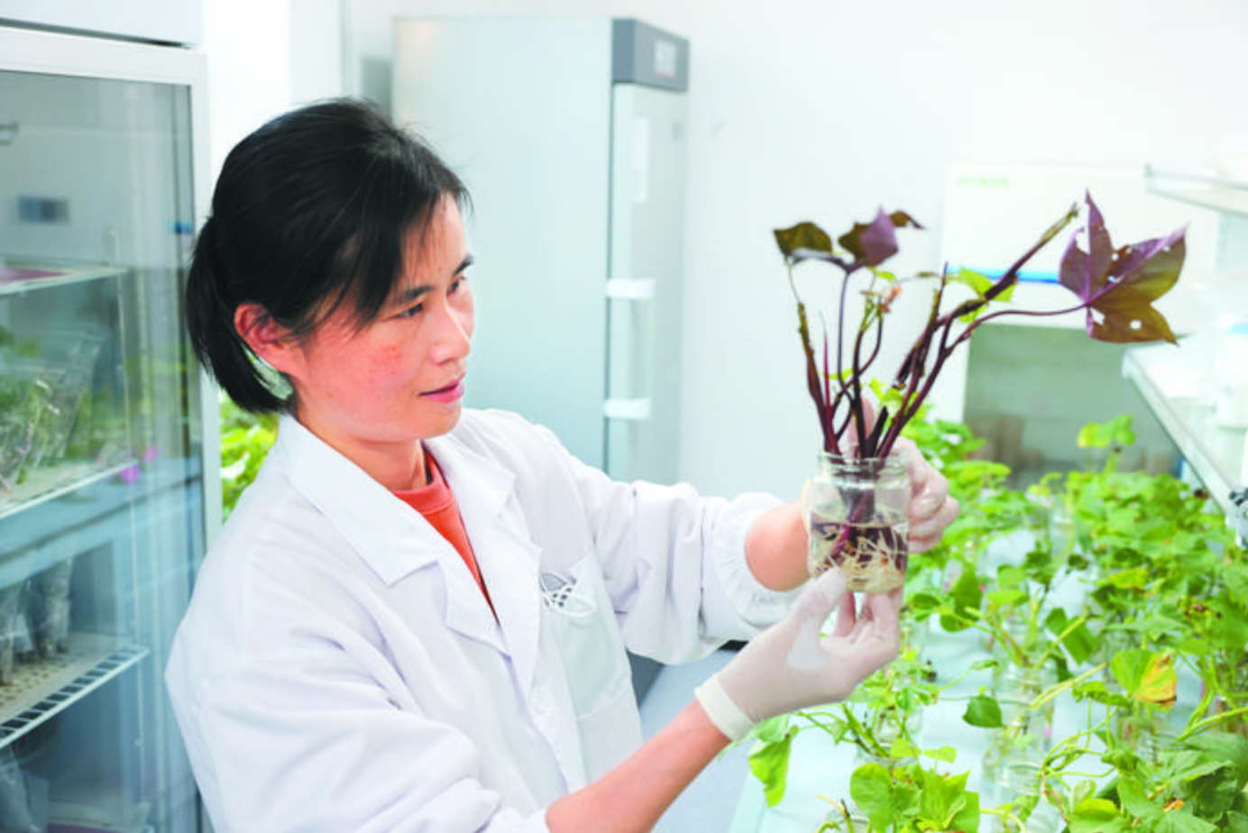 “草莓、土豆、甘薯等種質資源很容易帶病,在保存植株時很難進行消毒,加上保存時間短所占空間大,會采取莖尖這種離體的方式保存。”榮松柏解釋,通過適當的溫度、光照以及生長抑制劑的使用,可以延長保存時間。