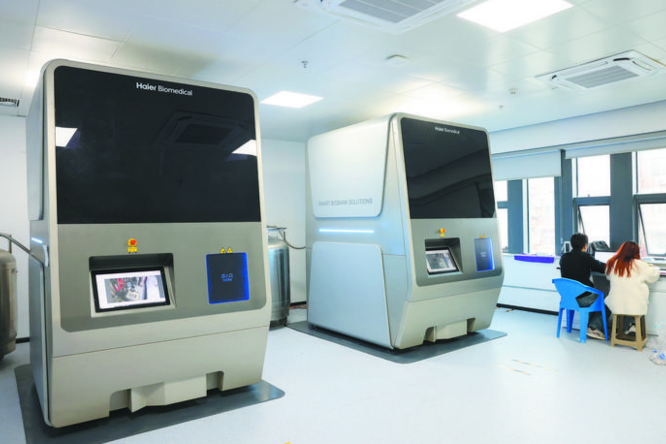 全自動液氮罐儲存庫價值200萬元的液氮罐旁,安徽省農業種質資源中心庫博士傅金晨正在對魚蝦等樣品入庫。