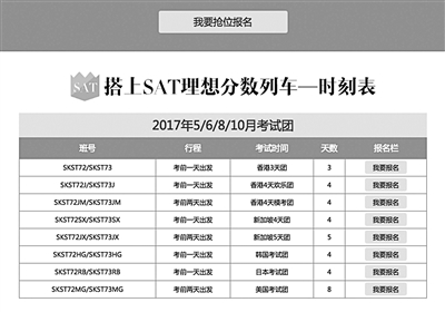 對于大部分未成年的SAT考生來說,無論是去香港、澳門還是新加坡等地參加SAT考試,都是一次不近的旅程,同時還得保證人身安全、學習狀態(tài)、考試順利等因素。即便是有家長選擇陪同孩子去參加SAT考試,除了花費更多之外對孩子幫助十分有限。所以,不僅旅行社、教育機構有SAT考團,就連學校自己也組織了SAT考團,有家長反映在食宿安排上條件更好。北青報記者通過采訪了解到,北京不少高中都有“自營”的SAT考團,比如十一學校,就是經(jīng)過招標找到合作旅行社,完成了SAT考團的籌備和建設。