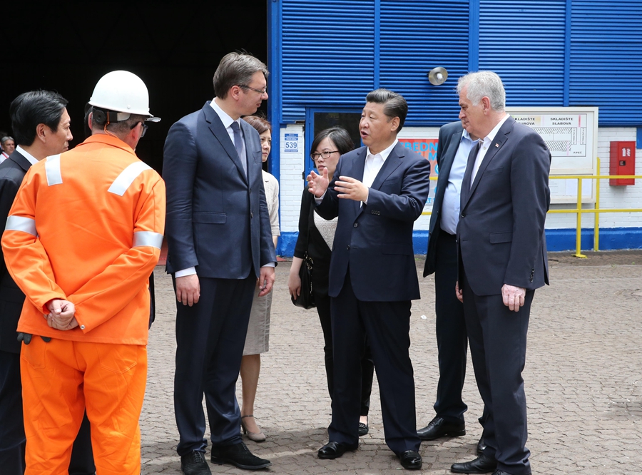 新華社記者丁林 攝 央廣網(wǎng)貝爾格萊德19日消息(記者劉樂 朱敏)19日上午,國家主席習(xí)近平在貝爾格萊德參觀河鋼集團塞爾維亞斯梅代雷沃鋼廠。 習(xí)近平抵達(dá)時,塞爾維亞總統(tǒng)尼科利奇、總理武契奇在停車處熱情迎接。鋼廠工人和家屬、當(dāng)?shù)厥忻駭?shù)千人夾道歡迎。 習(xí)近平發(fā)表了熱情洋溢的講話。習(xí)近平指出,中國同塞爾維亞傳統(tǒng)友誼深厚,彼此懷有特殊感情,值得我們倍加珍視。在中國改革開放初期,塞爾維亞人民的成功實踐和經(jīng)驗曾經(jīng)為我們提供了難得借鑒。今天,中塞企業(yè)攜手合作,開啟了兩國產(chǎn)能合作的新篇章。這既是對兩國傳統(tǒng)友誼的延續(xù),也體現(xiàn)了雙方深化改革、實現(xiàn)互利共贏的發(fā)展決心。中國企業(yè)一定會與塞方同行精誠合作。我相信,在雙方密切合作下,斯梅代雷沃鋼廠必將重現(xiàn)活力,為增加當(dāng)?shù)鼐蜆I(yè)、提高人民生活水平、促進塞爾維亞經(jīng)濟發(fā)展發(fā)揮積極作用。 習(xí)近平強調(diào),中國人民走的既是一條獨立自主、和平發(fā)展之路,也是一條互利共贏、共同繁榮之路。中方期待同塞方繼續(xù)打造更多合作大項目,使中塞合作更好造福兩國人民。 塞方領(lǐng)導(dǎo)人在致辭中表示,河鋼斯梅代雷沃鋼廠是塞中傳統(tǒng)友誼的又一見證。斯梅代雷沃鋼廠走過了一條坎坷的發(fā)展之路,最終在同偉大、友好的中國合作中找到了重新激發(fā)活力的希望,揭開了新的歷史一頁。塞中這一合作項目不僅將為塞爾維亞當(dāng)?shù)貛?000個就業(yè)機會,改善人民的生活水平,還將為塞中更廣泛合作開辟新的前景。 兩國領(lǐng)導(dǎo)人共同參觀鋼廠。高大寬敞的熱軋車間內(nèi),機器轟鳴,熱汽蒸騰,生產(chǎn)線上各種軋鋼鍛材不時呼嘯而過。習(xí)近平不時駐足參觀產(chǎn)品,并登上中控室,詳細(xì)詢問工藝環(huán)節(jié),了解生產(chǎn)情況。 隨后,習(xí)近平在塞方領(lǐng)導(dǎo)人陪同下,來到員工食堂同工人交流互動。習(xí)近平高度評價中塞人民的傳統(tǒng)友誼,勉勵工人們努力開拓,提高鋼廠綜合競爭力,使鋼廠合作項目早結(jié)碩果,惠及當(dāng)?shù)厝嗣瘛? 斯梅代雷沃鋼廠成立于1913年,是該地區(qū)知名的百年老廠。今年4月,中國河鋼集團投資該廠,使其擺脫經(jīng)營危機,重現(xiàn)活力。 參觀鋼廠前,習(xí)近平抵達(dá)阿瓦拉山紀(jì)念碑公園,向塞爾維亞無名英雄紀(jì)念碑敬獻(xiàn)花圈,并在紀(jì)念簿上留言。 同日,習(xí)近平還出席了尼科利奇、武契奇共同舉行的午宴。 王滬寧、栗戰(zhàn)書、楊潔篪等參加上述活動。