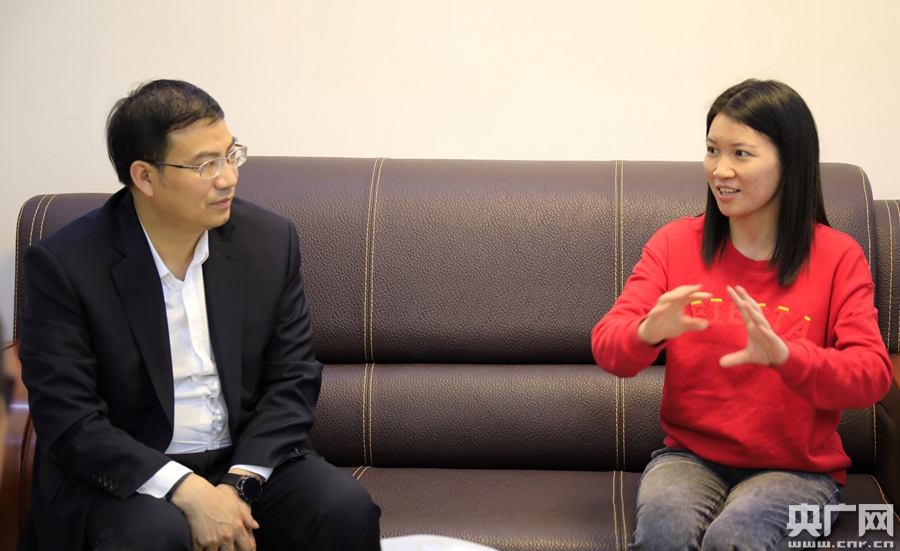 汕尾市稅務(wù)局黨委委員、總經(jīng)濟(jì)師郭郁(左)與全國(guó)人大代表張麗(右)座談交流。(央廣網(wǎng)發(fā))