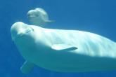 小白鯨“小五”與媽媽在玩耍。(央廣網發 主辦方供圖)