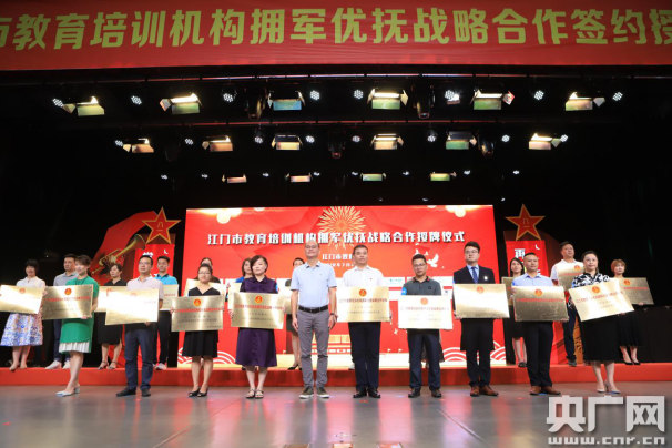 江門市教育培訓機構擁軍優撫戰略合作授牌儀式(央廣網發 通訊員鐘少蘭供圖)