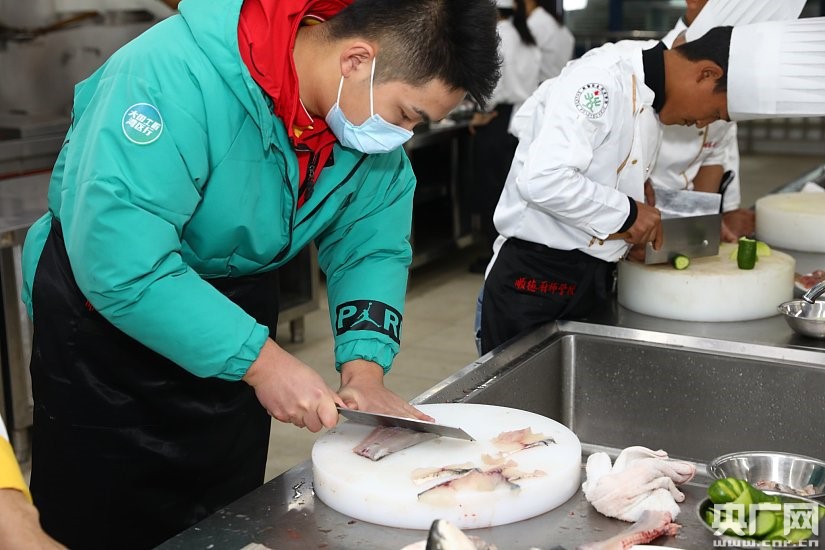 來自四川涼山班的彝族學員正在練習片魚技藝。(央廣網發)