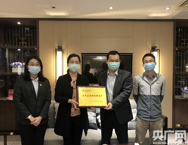 廣東農(nóng)行FT賬戶助力天禾農(nóng)資疫情期間復工復產(chǎn)。圖為廣東農(nóng)行為天禾農(nóng)資頒發(fā)“自貿(mào)區(qū)金融創(chuàng)新客戶”牌匾。(央廣網(wǎng)發(fā) 廣東農(nóng)行供圖)
