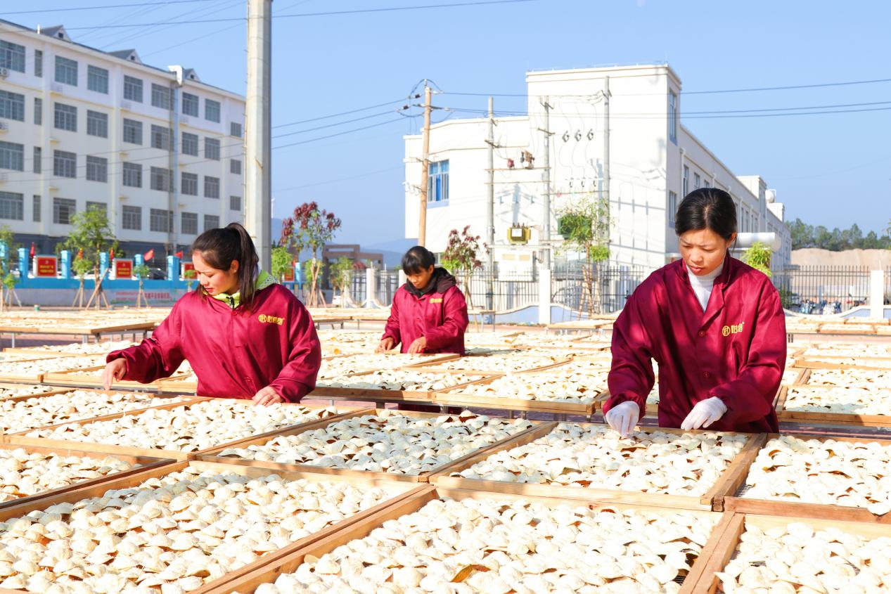 浦北陳皮產業園的工作人員在曬制陳皮(央廣網發 浦北縣委宣傳部供圖)