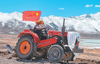 4月30日,村民開著拖拉機參加西藏那曲市尼瑪縣的春耕典禮。新華社記者 侯 捷攝