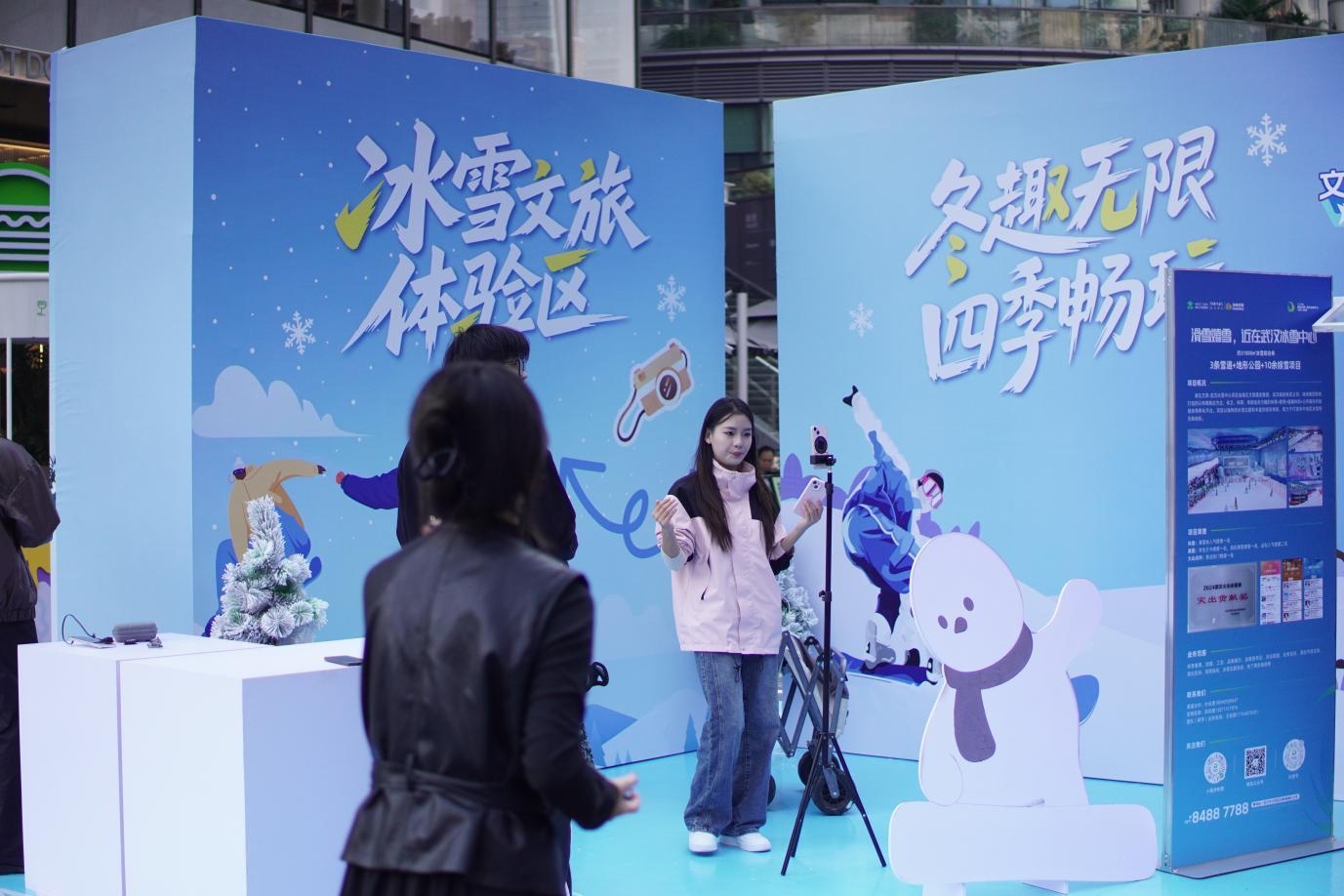冰雪文旅體驗區提前點燃冬日熱情。桃花沖滑雪場、武漢冰雪中心帶來專業滑雪板、冰鞋等靜態展品,工作人員現場提供裝備選品指導,同步發放冰雪文旅宣傳手冊與特惠券,為市民規劃冬季滑雪行程提供全方位參考,實現“秋日種草、冬日暢玩”的文旅消費引導。