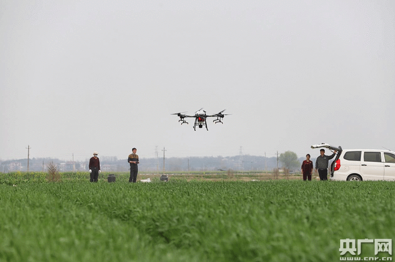 央廣網彭澤2月23日消息(記者胡斐 通訊員付洪 袁昕)眼下,春耕備耕工作正在贛鄱大地如火如荼,在江西彭澤縣芙蓉農場郁郁蔥蔥的越冬小麥地里,無人機正在進行葉面施肥。