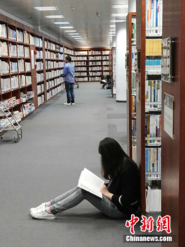 王贊向記者證實了這樣的說法,“前幾個月放暑假的時候,來看書的人就很多。那時候甚至有不少人坐在(閱覽室的)地上看書,靠著墻,一排一排的”。“這幾天大家都放假,人會多些。暑假時看書的人更多,如果晚到一點可能就占不到好座位了。”