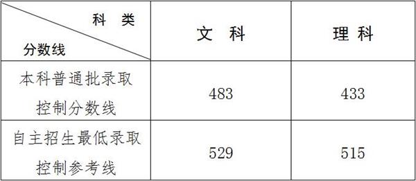 3.高水平運(yùn)動(dòng)員文化錄取控制分?jǐn)?shù)線:文科483分、理科433 分。其中在教育部“陽(yáng)光高考”平臺(tái)公示可享受本科普通批錄取控制分?jǐn)?shù)線65%優(yōu)惠分值的考生,分別按文科313分、理科281分執(zhí)行。