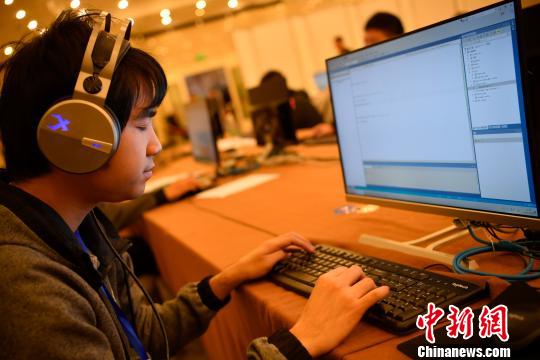 圖為諸曉鳴正在參加編程比賽 劉冉陽 攝