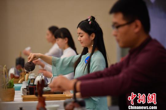 圖為茶藝組參賽者展示茶藝 劉冉陽 攝