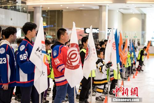 中新網北京3月26日電(記者 王牧青) 25日下午,第三屆海淀區中小學冰球聯賽開幕式在北京五彩城冰場舉行。即日起到4月28日,超過600名學生球手將在五棵松體育館、華星輝煌體育管理有限公司和北京五彩冰酷運動中心開啟第三屆中小學冰球聯賽。