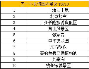 與清明小長(zhǎng)假一樣,上海迪士尼再次占據(jù)排行榜第一,成為五一小長(zhǎng)假中最具人氣的景區(qū)。