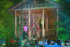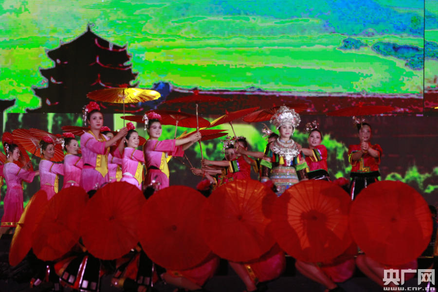 一首首情歌從窗口飛出,一個個靚妹俊哥從河的兩岸走來,阿哥阿妹盡情歌唱喲,演繹侗族大霧梁永不消逝的情歌.....。在皇都景區分會場,大型原生態情歌大對唱實景演出——“歌醉侗寨”正在精彩開演。該節目時長1個半小時,依托坪坦河兩岸侗寨風光,以侗族情歌對唱為主線,將四里山歌、苗歌、瑤歌、喉路歌、蘆笙、木葉、侗笛、琵琶歌有機融合,讓游客在觀賞美麗山水、古樸侗寨的同時,盡情聆聽到美妙的歌聲。 “今年的節目讓我耳目一新,大戊梁歌會一年比一年精彩!睆V東游客楊濤豎起大拇指稱贊。 “不僅精彩,活動內容豐富,有品味,景區文化內涵大大提升了!北本┯慰忘S玲插話過來。 -