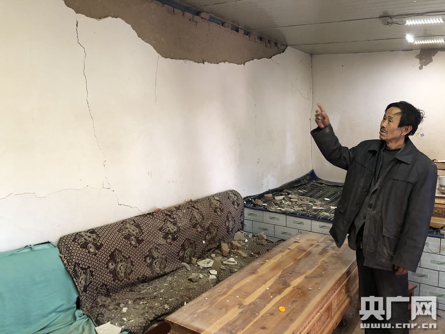 唐尕昂鄉讓吾道行政村黃科勒村部分房屋出現裂縫(甘肅省消防救援總隊提供)