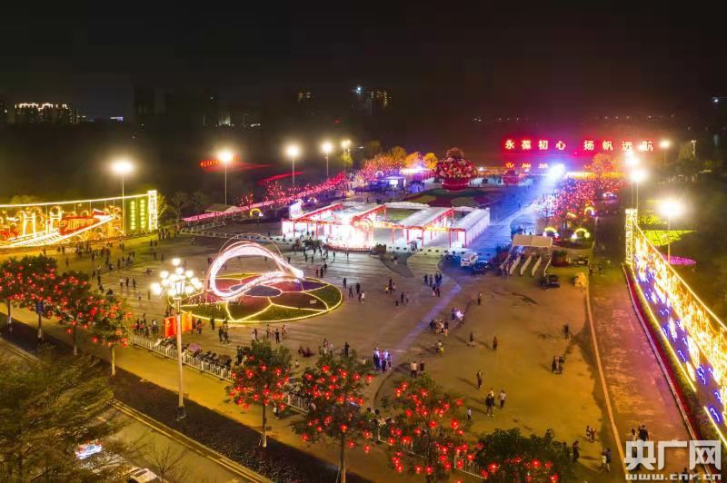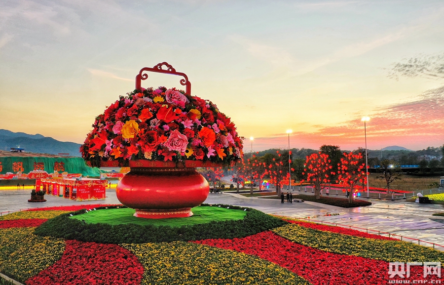高達(dá)15米的大花籃是知識城分會場的亮點(diǎn)之一。待華燈初上,圍繞花籃萬盞燈籠點(diǎn)亮,呈現(xiàn)火樹銀花的勝景。