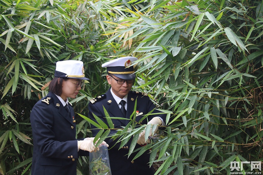 徐蕾和同事用剪刀抽取長度約50厘米連枝帶葉的竹枝,放入取樣袋,“我們需要抽取約1公斤樣品,送廣州海關(guān)技術(shù)中心進(jìn)行農(nóng)殘項目檢測!