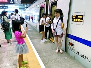 昨晨7點20分,北京晨報記者抵達北京南站,D6655次已停靠在站臺準備迎接旅客。在“熱烈祝賀北京至雄安新區(qū)動車組列車首發(fā)”橫幅下,旅客們爭相合影留念(如圖)。北京晨報記者采訪中發(fā)現(xiàn),首發(fā)列車中以年輕旅客居多,另外還有不少旅客是專門帶著孩子準備到雄安新區(qū)轉(zhuǎn)轉(zhuǎn)。外觀上看,這趟列車和既有高鐵列車并無區(qū)別,車內(nèi)座椅為咖色設(shè)計,設(shè)有餐車。