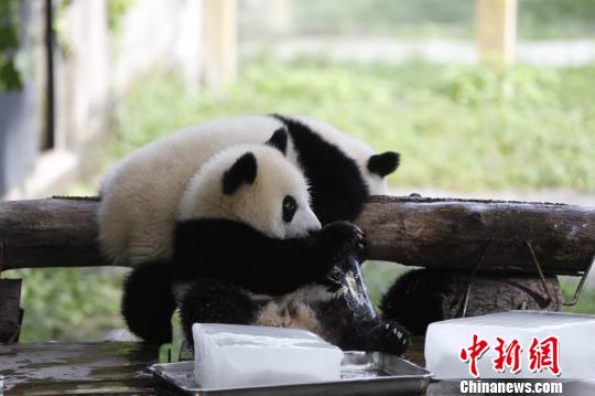 “除了冰塊,夏季還會(huì)在飲食中增加冰凍水果的比例,幫助熊貓防暑降溫。”尹彥強(qiáng)說。不過,并非所有熊貓都有“冰凍水果”待遇。熊貓館里剛滿一歲的“渝寶”、“渝貝”和還不滿一歲的“良月”因?yàn)槟昙o(jì)太小不能吃冰的東西,只能喝常溫的配方奶。