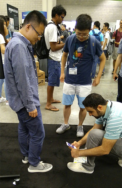 7月21日至26日,全球頂級計算機視覺會議CVPR 2017在美國夏威夷舉行。大會上,慕名而來的谷歌工程師用中國的“拍立淘”現場“刷鞋找同款”。這位外國工程師先是對著中國工程師上半身各種拍攝,一切順利。也許是覺得常規(guī)體驗太無聊,他突發(fā)奇想,蹲下來對著人家的腳一頓狂拍。