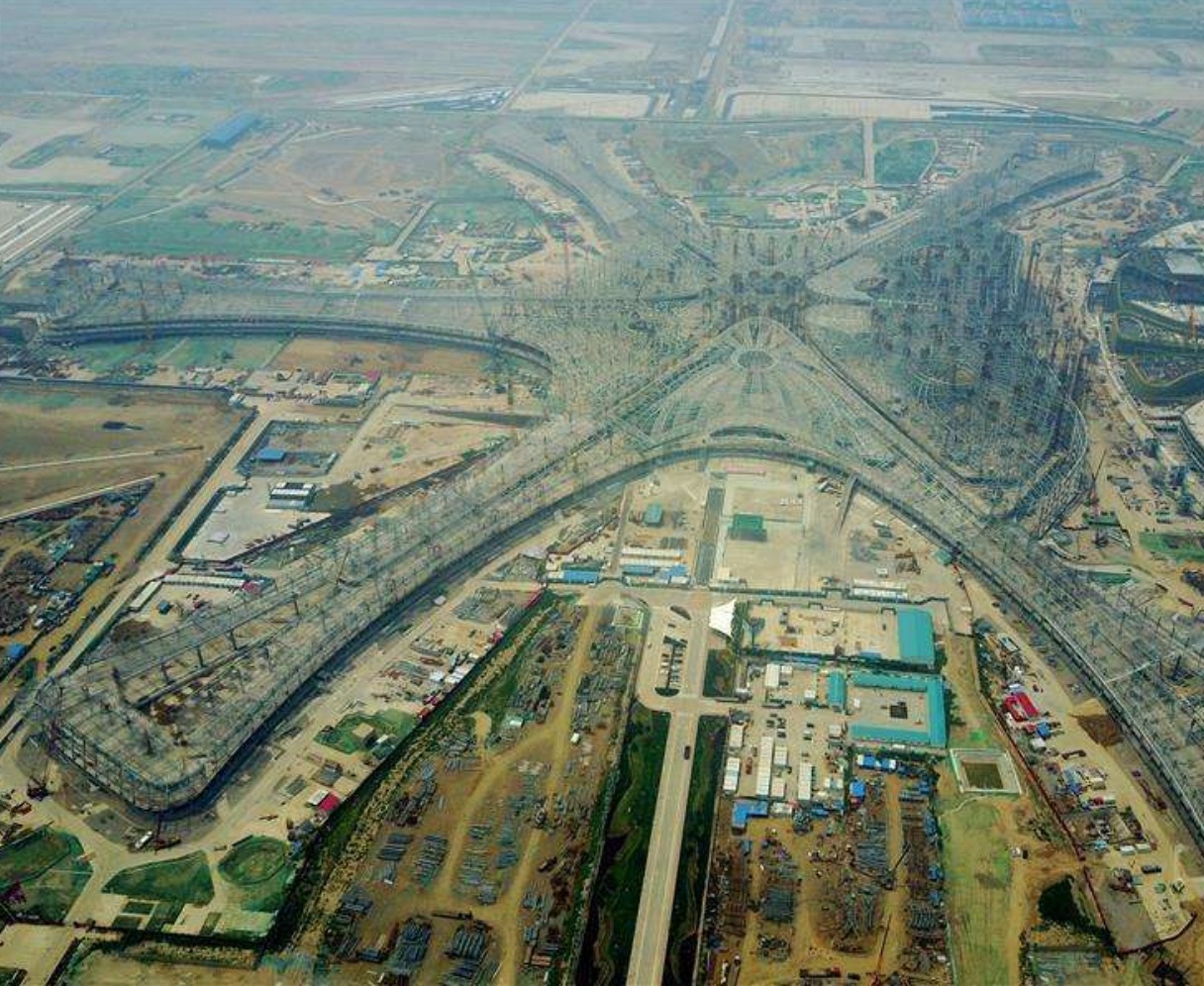 北京新機場主航站樓封頂封圍