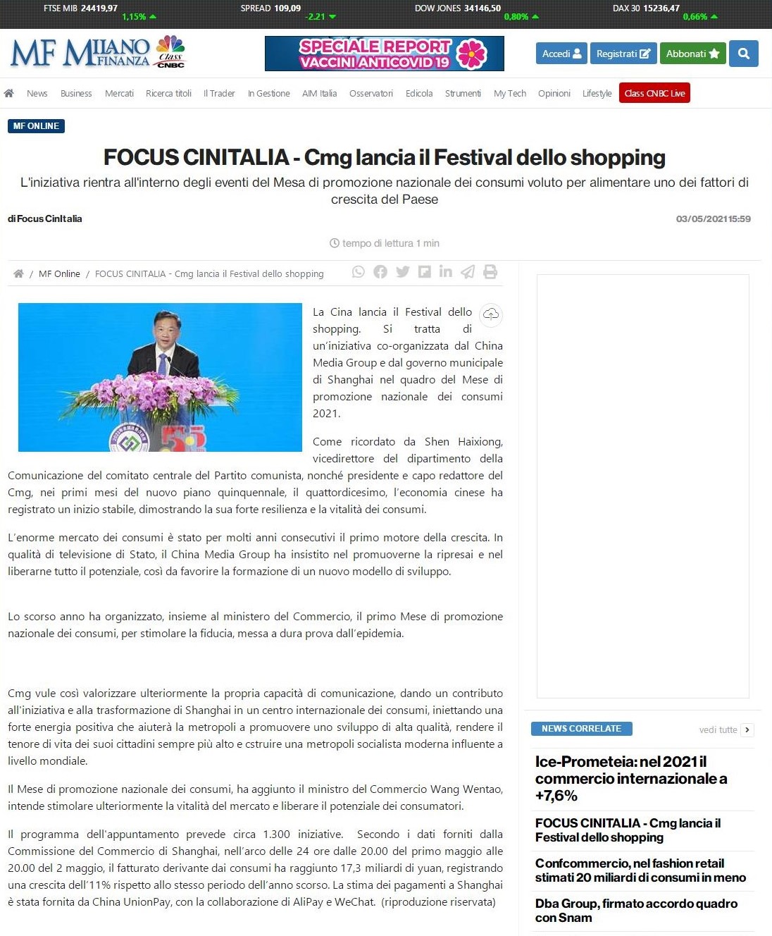 △意大利《米蘭財經(jīng)報》網(wǎng)站