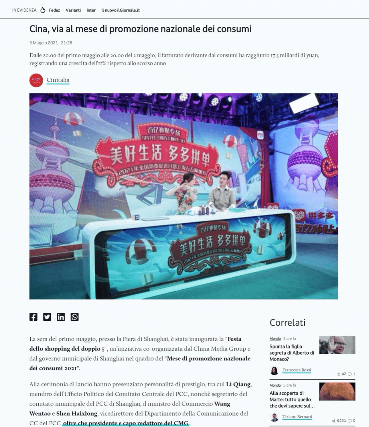 △意大利《日報》網(wǎng)站