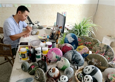 郝壯幾乎把所有業余時間都用在了手繪石頭上,不少工友都認為他“不務正業”。“搞藝術真的有前途嗎?”王麗也曾一度懷疑老公的選擇,“我十分支持他的愛好,但看他下班后搗鼓那些石頭,又不能變成錢,畢竟要養家糊口啊,讓人著急啊。