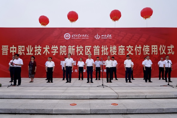 在當天的交付使用儀式上,晉中市委書記吳俊清宣布首批樓座正式交付使用。晉中市住建局局長游躍軍向晉中職業技術學院黨委書記吳文勝遞交竣工標志牌并交接鑰匙。