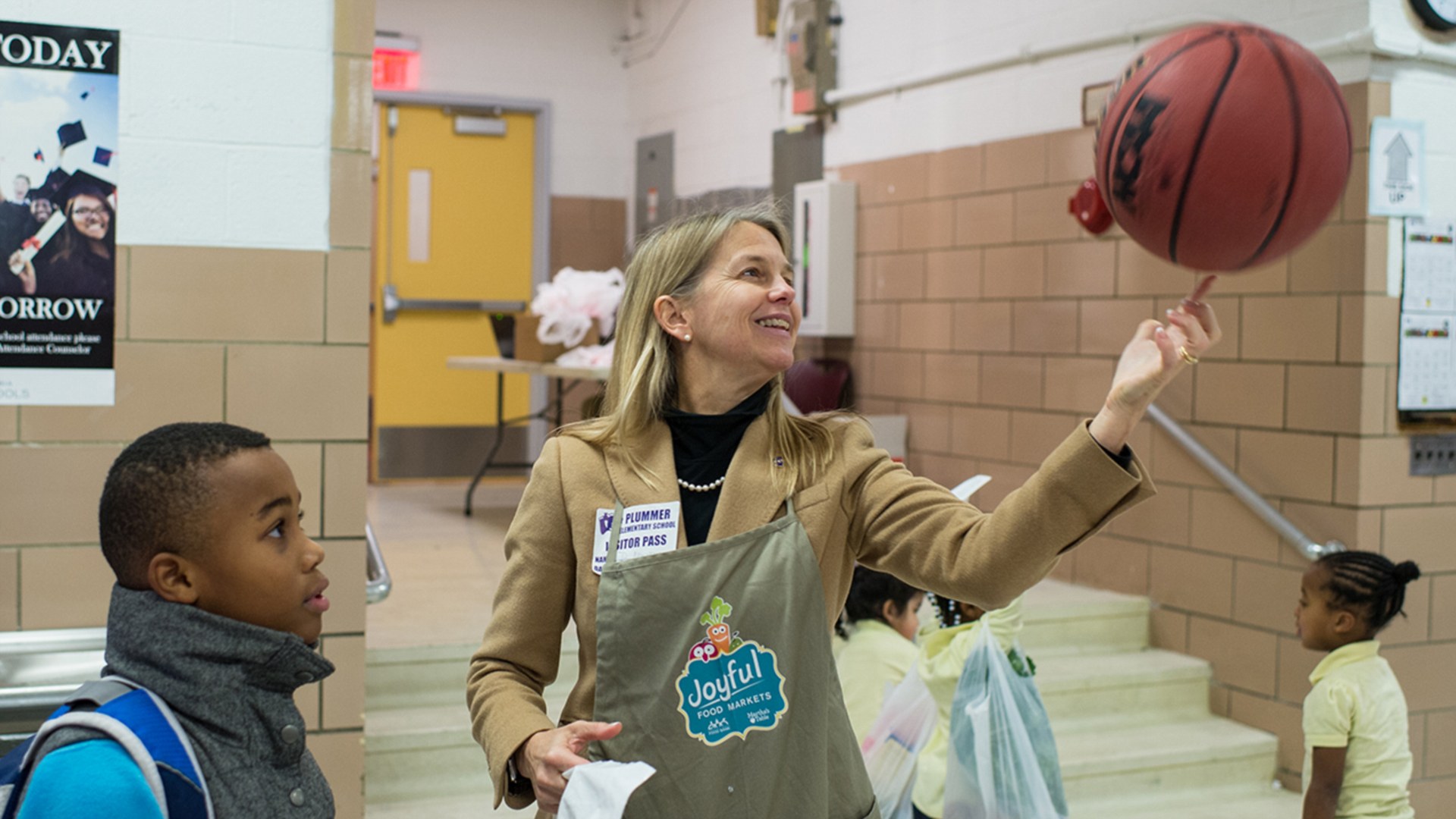 拍攝于2016年1月19日,圖為美國國家航空航天局副主管達瓦 紐曼在一所小學展示球技 -