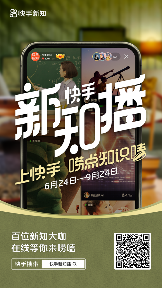 專業(yè)權(quán)威的知識(shí)科普,并非只能一板一眼,也可以生動(dòng)、有趣、接地氣、有互動(dòng)性。6月24日,快手宣布將推出大型直播活動(dòng)“快手新知播”。聯(lián)動(dòng)100名知識(shí)大咖、50余家專業(yè)機(jī)構(gòu),以及超過1000名快手知識(shí)主播,在3個(gè)月的時(shí)間里帶來上萬場知識(shí)直播,為網(wǎng)友帶去實(shí)用、新奇、有趣的泛知識(shí)內(nèi)容,并助力知識(shí)創(chuàng)作者在平臺(tái)實(shí)現(xiàn)變現(xiàn),形成泛知識(shí)內(nèi)容生產(chǎn)消費(fèi)閉環(huán)。