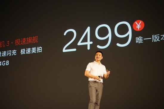 一加科技CEO劉作虎在發布會上表示,一加3將打破行業潛規則,不會用高配版本來標榜高性能再主推低配版本,來營造虛偽的性價比,而是做一款讓用戶在選擇時不用糾結、在使用時無所顧慮的極速旗艦。