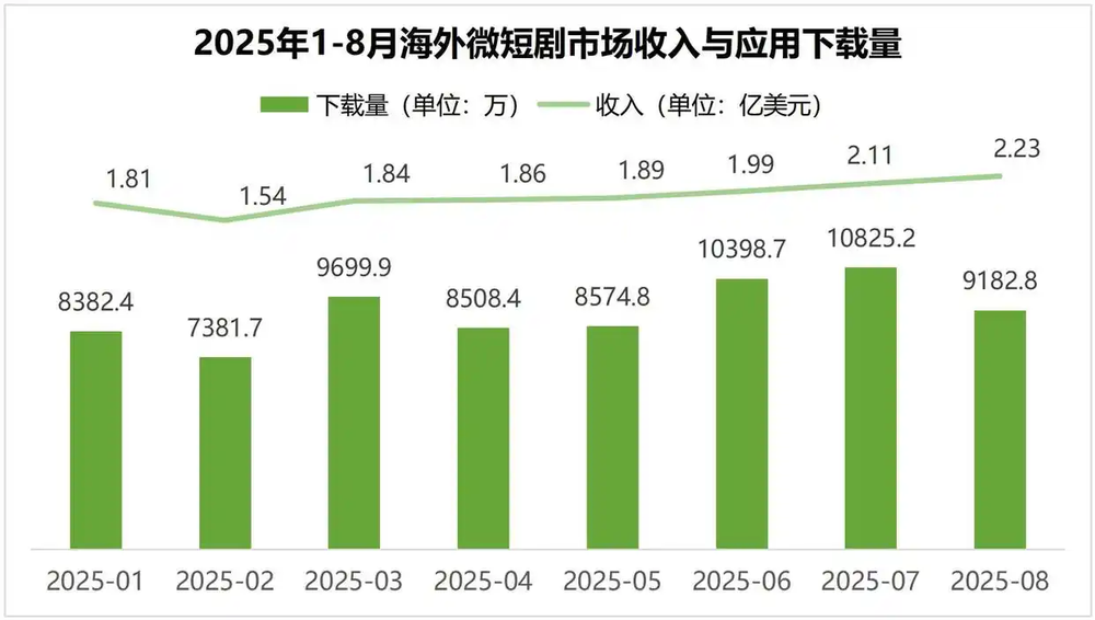 《白皮書》分析,隨著海外市場競爭升級,“抱團出海”已成中國微短劇“走出去”的必然選擇。2025年1—8月,海外微短劇市場總收入達15.25億美元(折算為人民幣約108.38億元),同比增長194.9%;海外微短劇應用總下載量約7.3億次,同比增長370.4%;中國企業占主導地位,通過產業聯盟、資源共享等方式,持續擴大中國微短劇影響力。